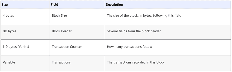 Table from; Mastering Bitcoin by Andreas M. Antonopoulos