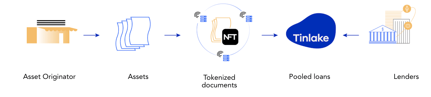 Bob owns a lumber yard. He has business documents (invoices) showing that he is owed $10,000 from Alice, but she cannot settle for another 30 days. Unfortunately, Bob cannot wait 30 days because he has bills to pay. Bob can essentially tokenize his asset (invoice) into an NFT and use it as collateral to borrow against it at a specific interest rate. The loan will be issued in stable coin. This process is performed through Altair and the Tinlake DAPP. When Alice finally pays Bob the money owed, he can pay back the loan in full, partially, or whenever he desires as long as it complies with the terms and conditions of the loan agreements.