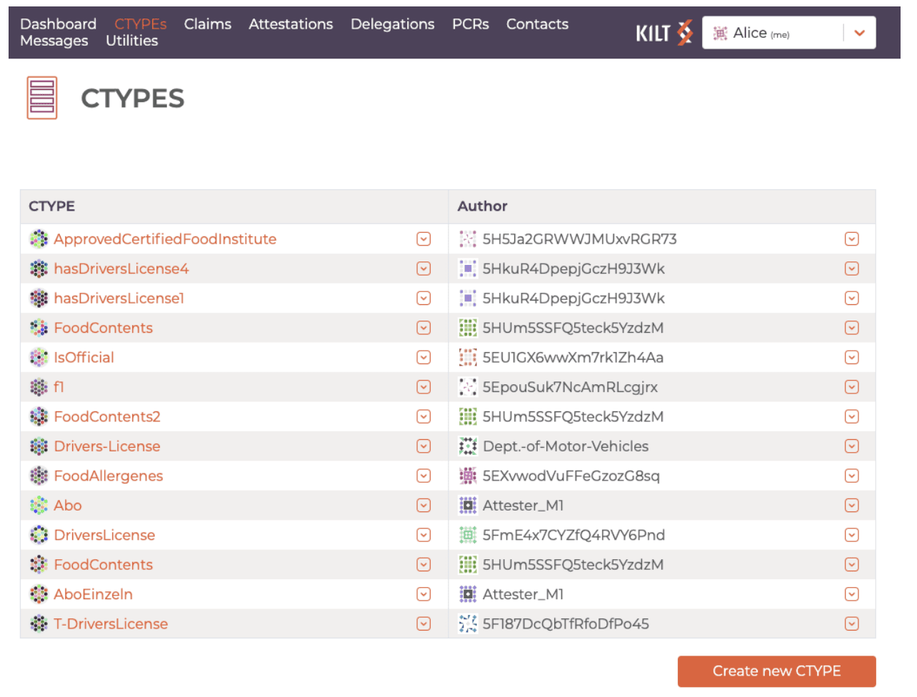 A Claim Type (CTYPE) is simply a template used by a Claimer to create a Claim on the KILT Protocol. Anyone can create a CTYPE, which can hold different credentials for various types of verification purposes. Adoption drives standardization of a specific CTYPE, so the more people use it and trust it, the more clout it has and users it will capture. In addition, the more valuable a CTYPE is, the more likely it is to be adopted by end-users.
